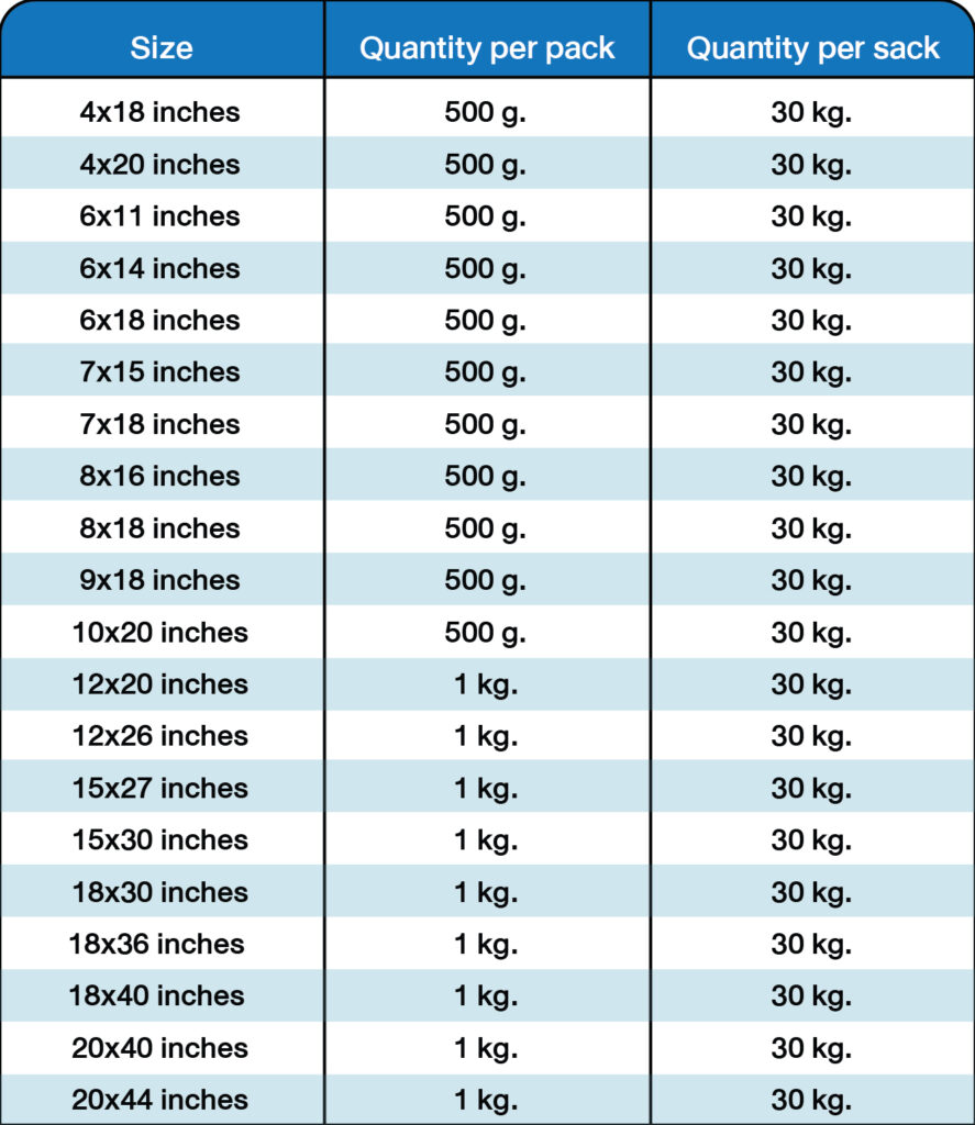 500 g / 1 kg. per pack 30 kg per sack Price: 30–60 Baht / pack