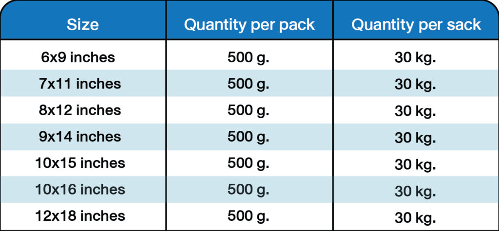 - Pastel-colored die-cut handle plastic bags (blue, green, orange). Colors are randomly selected.