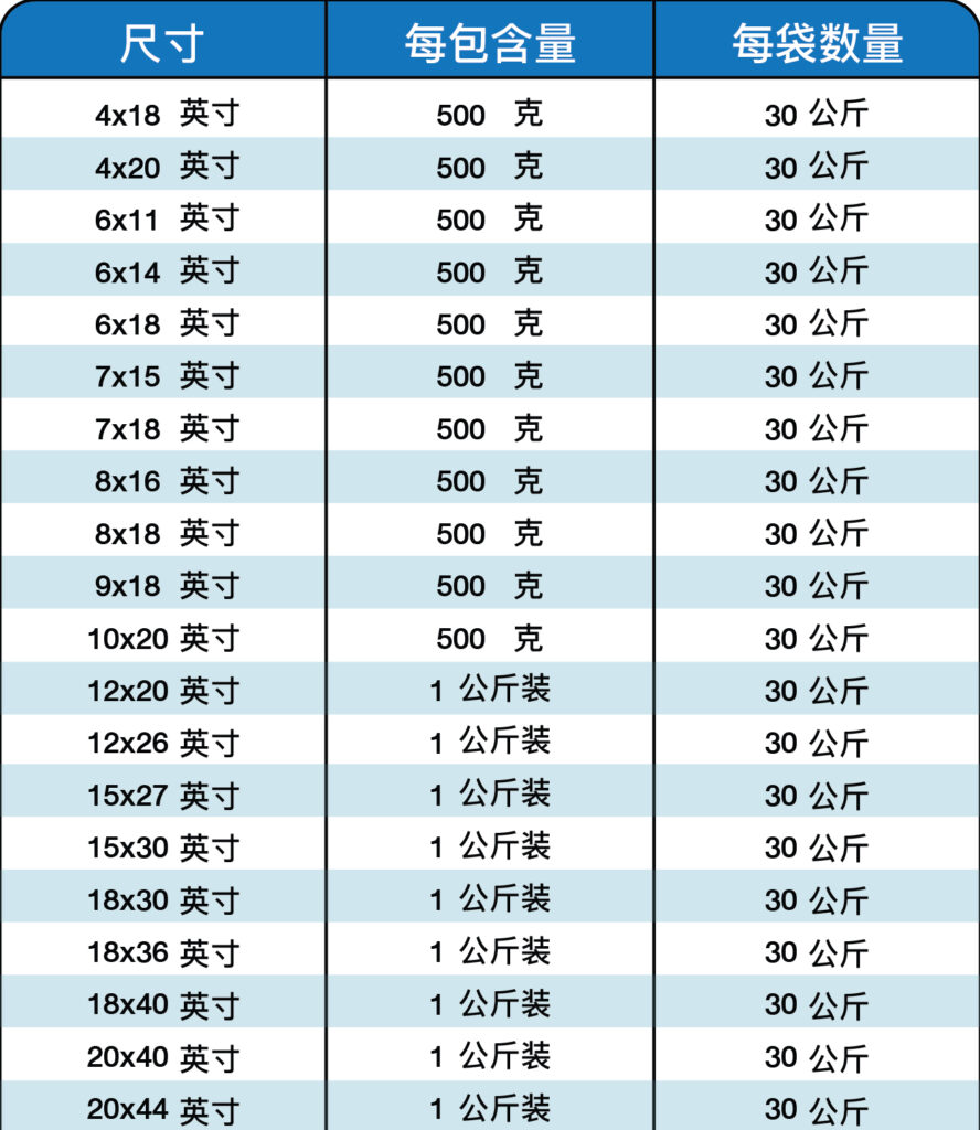 尺寸 4×18 英寸 – 9×18 英寸,带挂钩提手,每包500克。